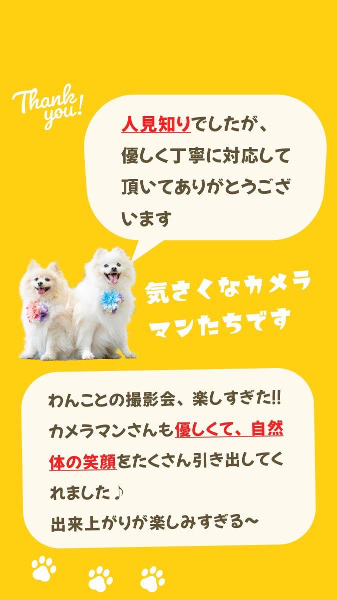わんわんフォトでは、撮影後に、無記名の簡単なアンケートを実施しております